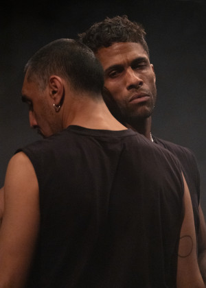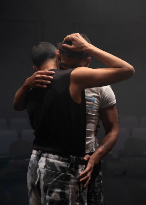 Auf der Bühne versinken die beiden Körper ineinander, fordern einander heraus, erfinden sich neu. Die Umarmung wird zur Sprache, das Ringen mit einem anderen Körper zum Weg, Beziehungen neu zu denken. Pas de deux und Musik verknüpfen sich zu einem polyphonen Patchwork aus Indentitätsfragmenten, Klangfarben und Popmusik.